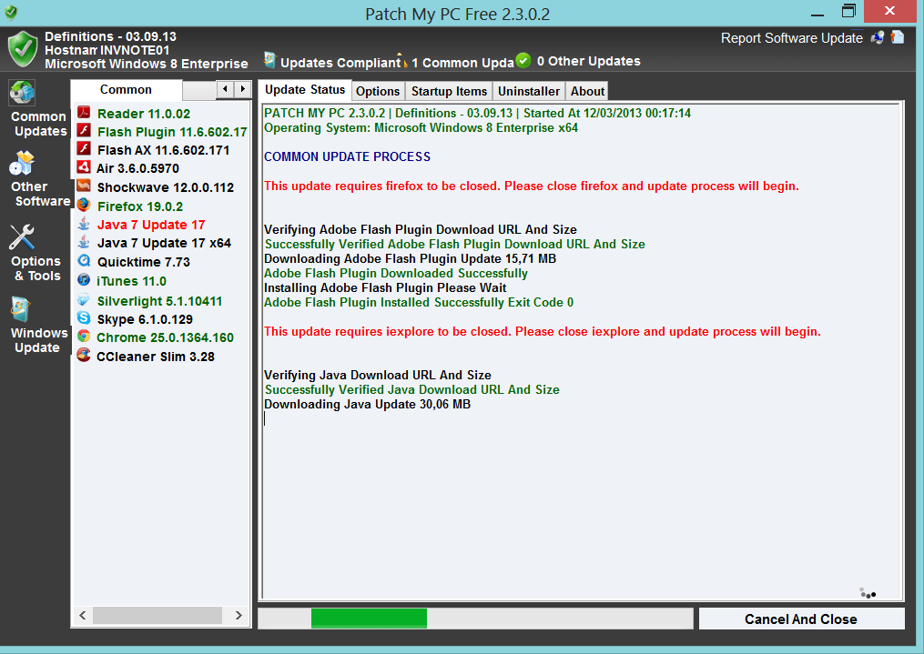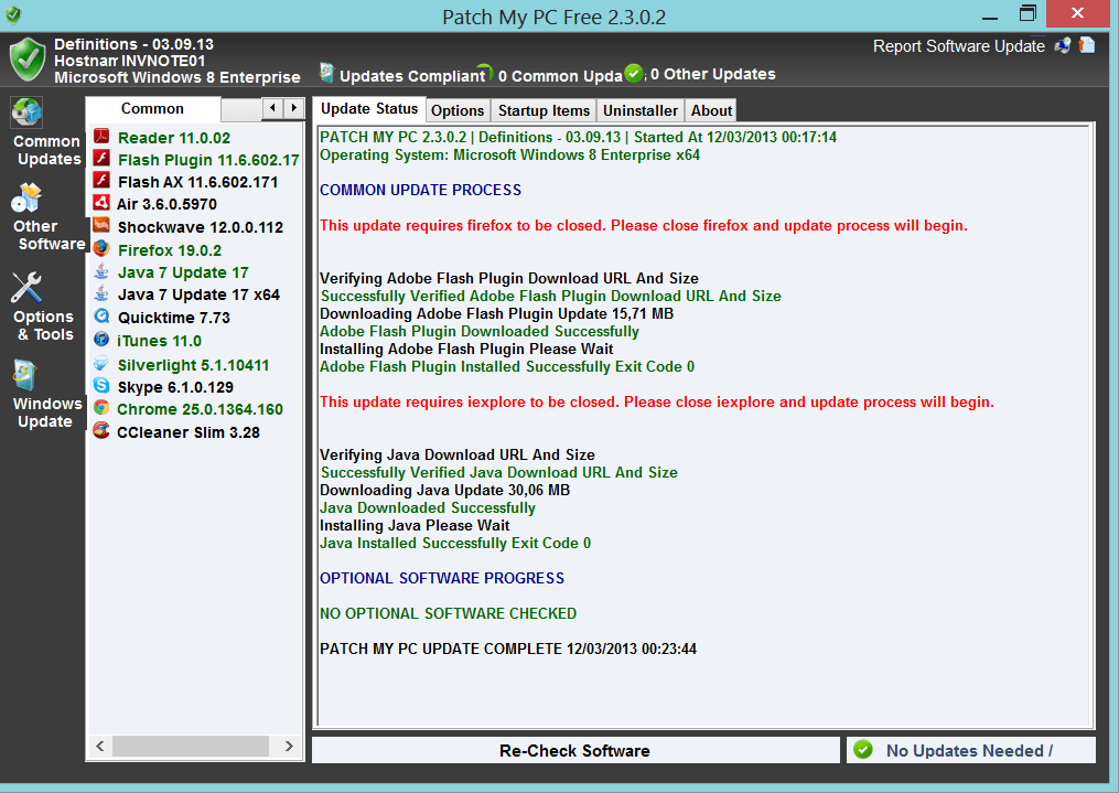 Usando o excelente e gratuito Patch My PC. Simples de usar, portable, basta executá-lo para que sejam identificados quais aplicativos estão instalados no computador e seu status de atualização.